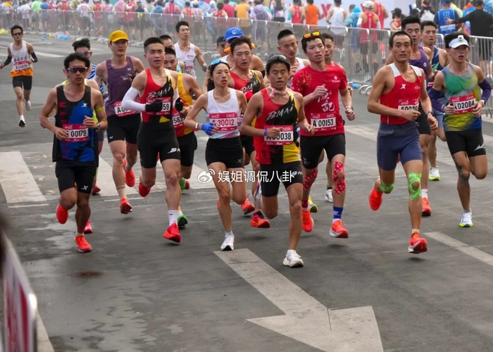 这张比赛照片显示,张水华的身前有一位A00038号的选手,两旁和身后还有一些男运动员,所以有网友提出质疑:“雇了不少陪跑的。”