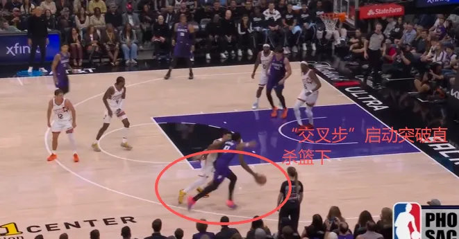 随后立即使用侧蹬步启动交叉步突破,
