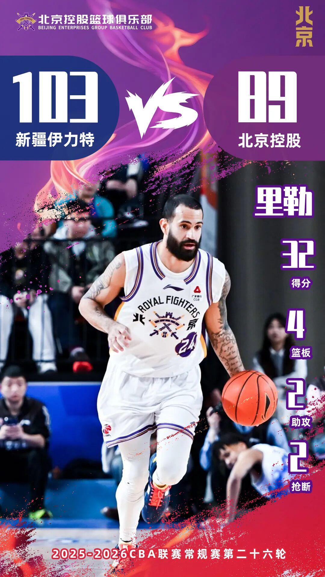 3月15日,北控男篮客战新疆伊力特男篮,此役,里勒砍下全场最高的32分,但球队整体进攻效率不足、防守端限制不力,最终89:103遗憾落败。